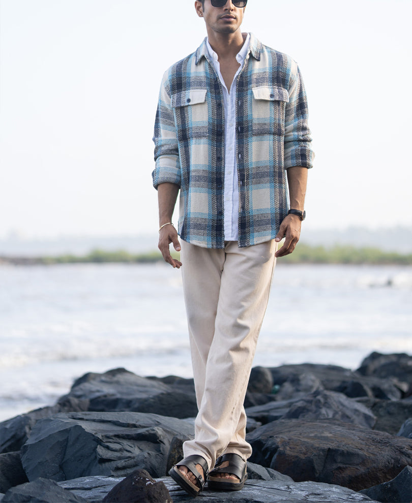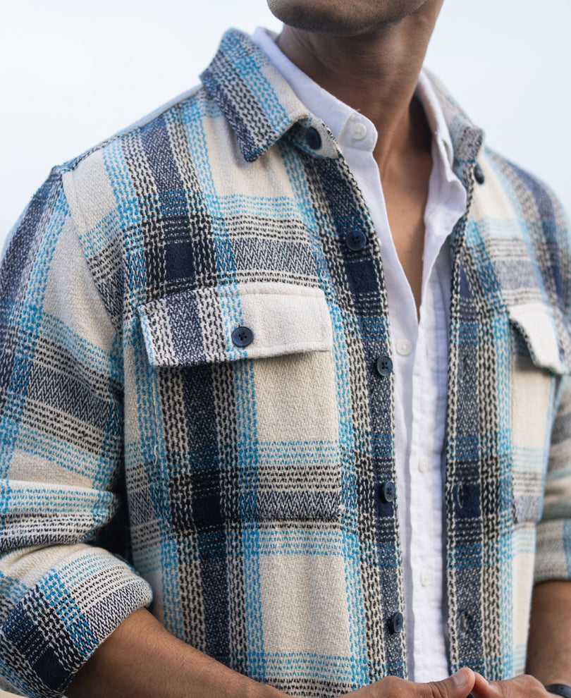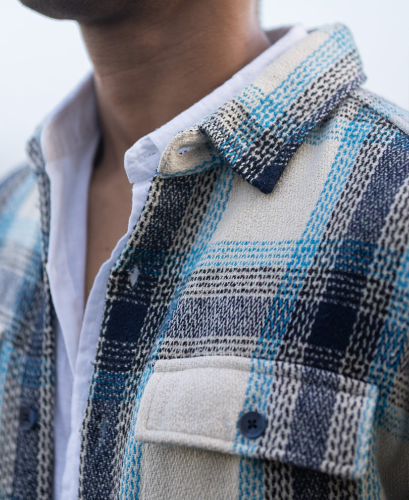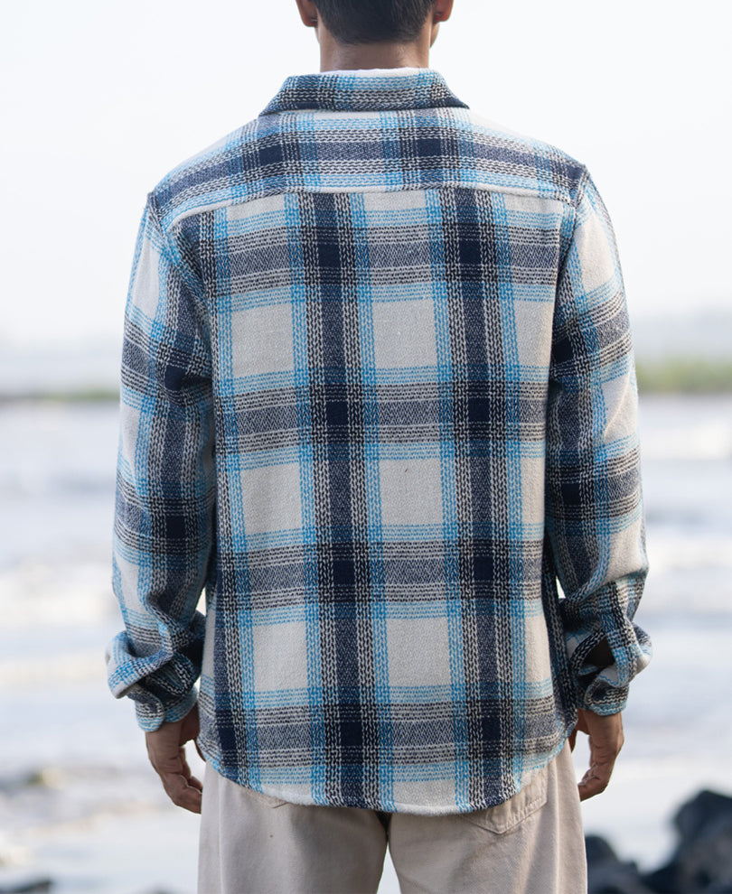 A refreshing play of calm blues and crisp structure. This shirt balances rugged checks with a clean silhouette that feels both relaxed and refined. Pair it with denims or chinos; it’s that middle ground between weekday polish and weekend ease.