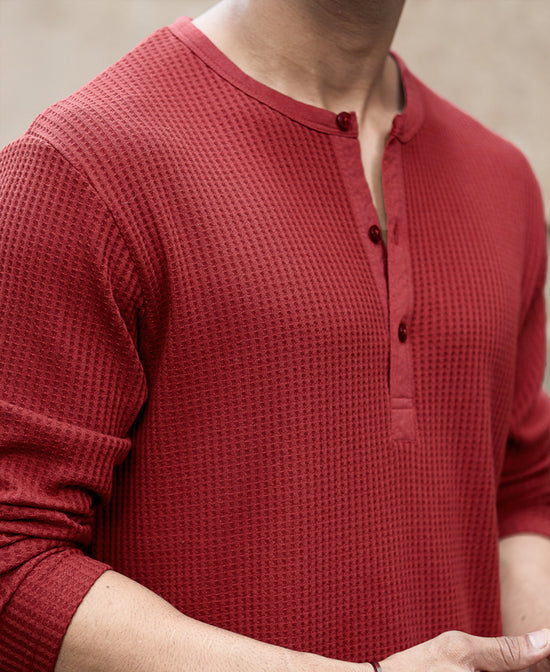 Built for slow mornings, fast coffee runs, and plans that come out of nowhere. This Brick Knit Henley brings the right mix of texture and ease; structured enough to stand out, but relaxed in all the right ways. Wear it solo or throw a jacket over; it adapts like your playlist, unexpectedly well.