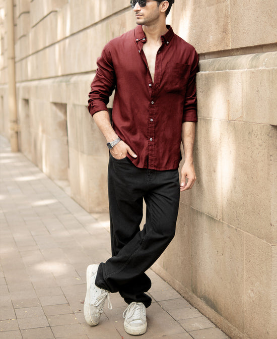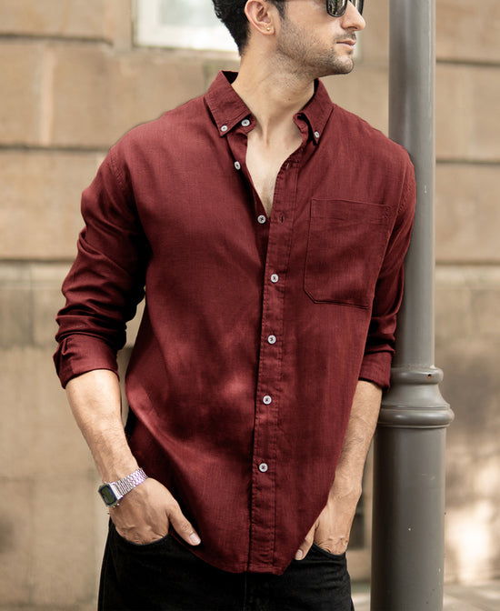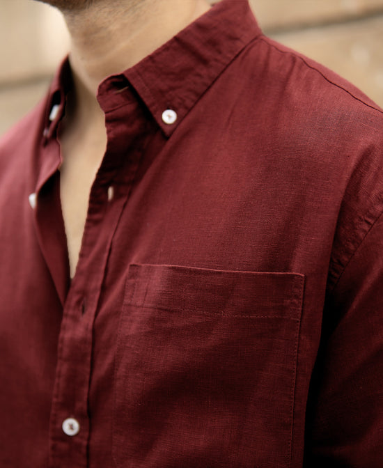 A shirt that knows how to breathe. The linen blend makes it easy on the skin, and the brick tone adds that earthy richness. The vibe is the perfect balance “outdoorsy” and “artsy”. Roll the sleeves, wear it open, or tuck it in; it works every time.