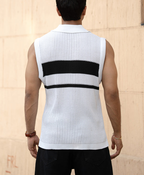 Sun’s out, style’s up. The Bright White Knit Stripe Vest is a summer flex with all the right details. Ribbed knit for comfort, soft stripes for charm. Layer it or let it solo—either way, it turns heads and keeps things breezy. Who knew sleeveless could look this sharp?