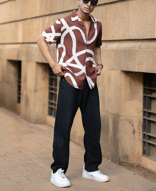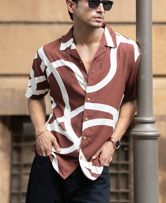 Take home the right energy your wardrobe needs with our Brown Abstract Print Shirt- A shirt where art meets intention. Crafted with a soft yet structured build, this shirt features earthy abstract prints that add depth without distraction. It offers a perfect balance of comfort and edge, made for those who like to wear aura, not just clothes. Crafted with precision, these shirts offer a stunning array of colors, patterns, and bold graphics, all created using state-of-the-art digital printing technology.
