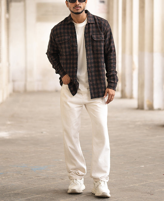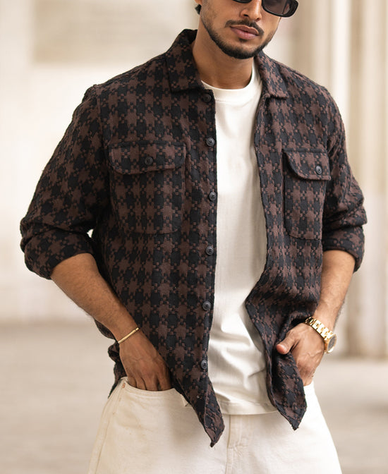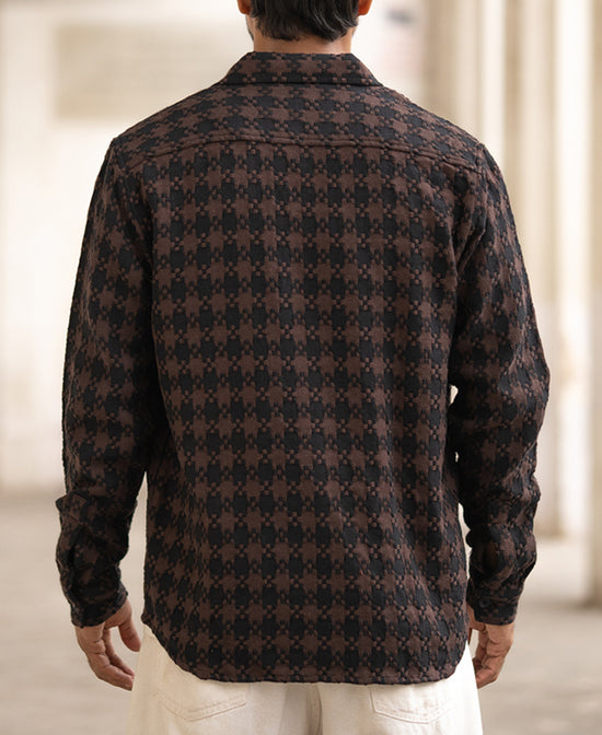 Brown And Black Structured Regular Fit Full Sleeves Shirt