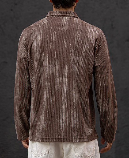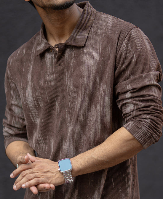Brown Corduroy Regular Fit Full Sleeves T-Shirt