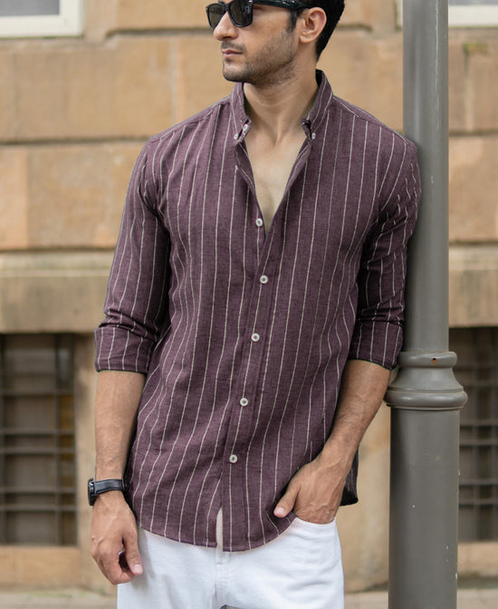Brown Flowy Striped Shirt