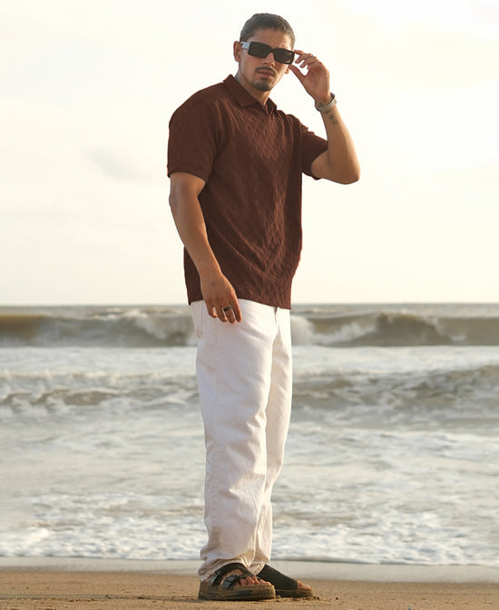 When in doubt, brown it out. This Brown Plain Structure Regular Fit Half Sleeve Collar T-Shirt is the ultimate go-to for days when you want to keep it simple but still look like you put in the effort. Designed with a 97% polyester and 3% spandex blend, it offers just the right amount of stretch for all-day comfort while maintaining a structured, polished look. The collared neckline gives it that extra touch of sharpness, making it a perfect balance between casual and refined.