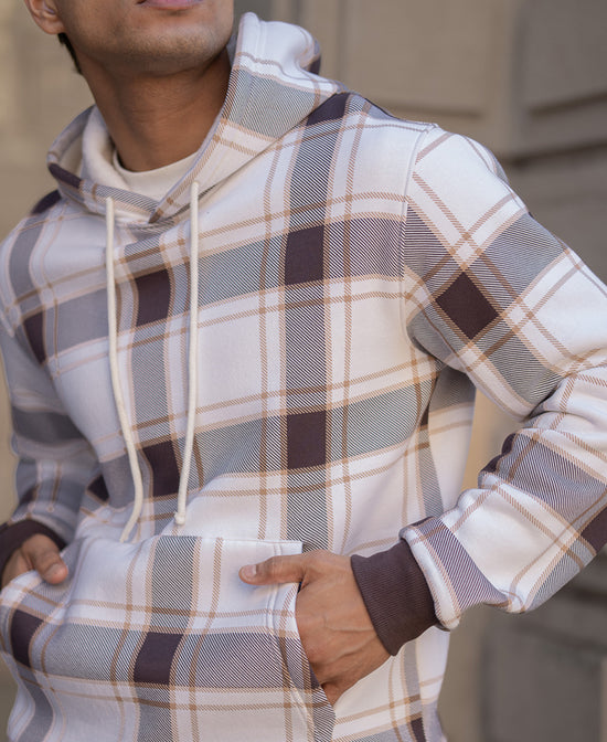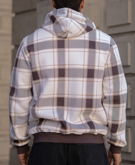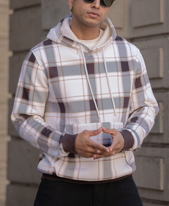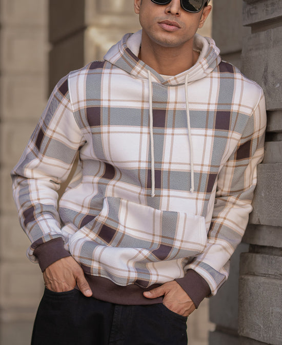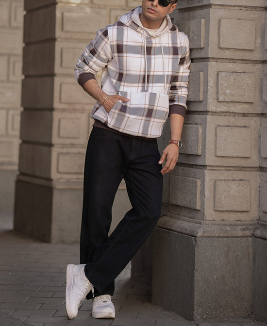 Dark Brown Checked Hooded SweaT-Shirt