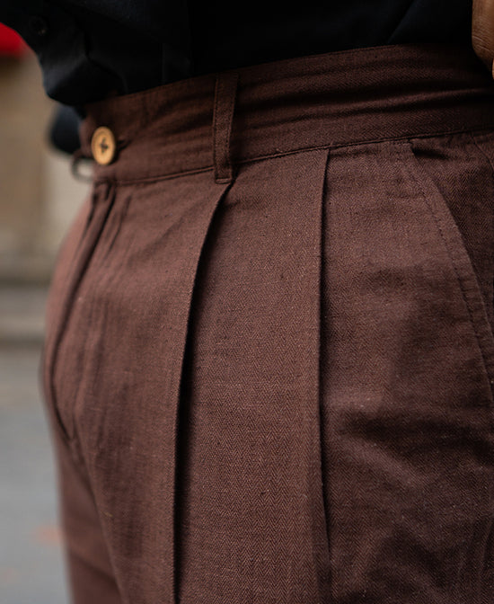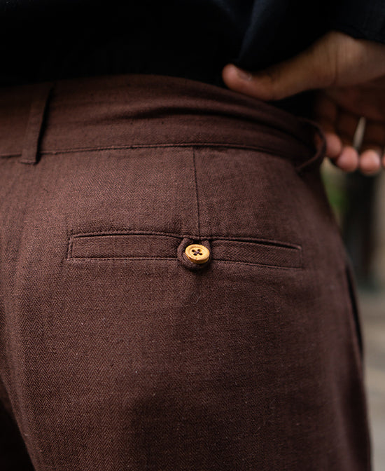 Earthy, easygoing, and effortlessly cool. These brown solid linen pants bring breathable comfort with a structured fit that doesn’t feel stiff. The deep brown shade adds richness, making them a solid choice when you want something casual but not sloppy. A staple for guys who like keeping things fresh and fuss-free.