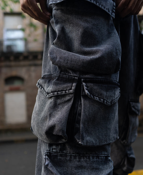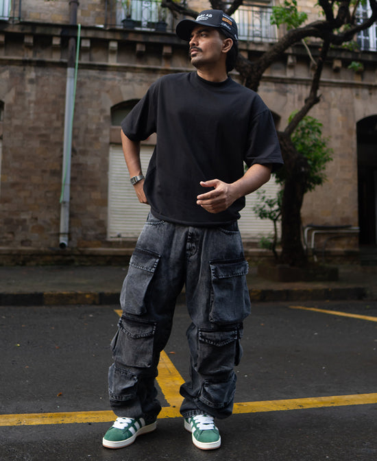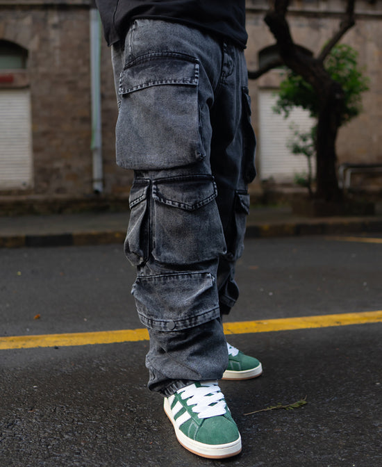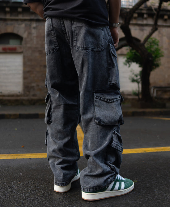 Carbon Black Baggy Fit Cargo Pockets Denim Jeans