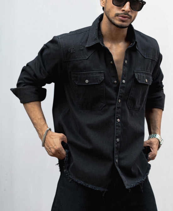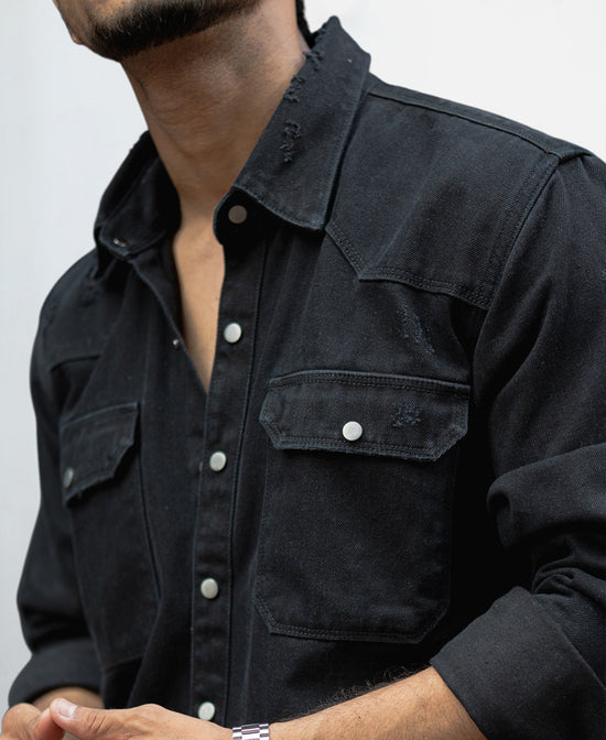 Carbon Black Regular Fit Full Sleeves Denim Shirt