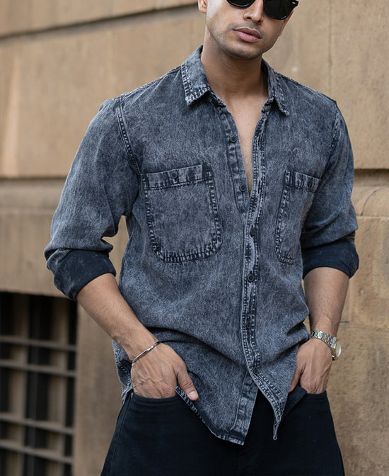 Our Carbon Black Regular Fit Full Sleeves Shirt is guaranteed to be your new everyday classic. Crafted in a washed-black finish, this shirt delivers an effortlessly rugged aesthetic. The chest pockets and button-down design add a functional edge, while the full sleeves make it versatile for layering or standalone wear. Dress it up with trousers or keep it casual with jeans—it’s a style staple for every occasion.