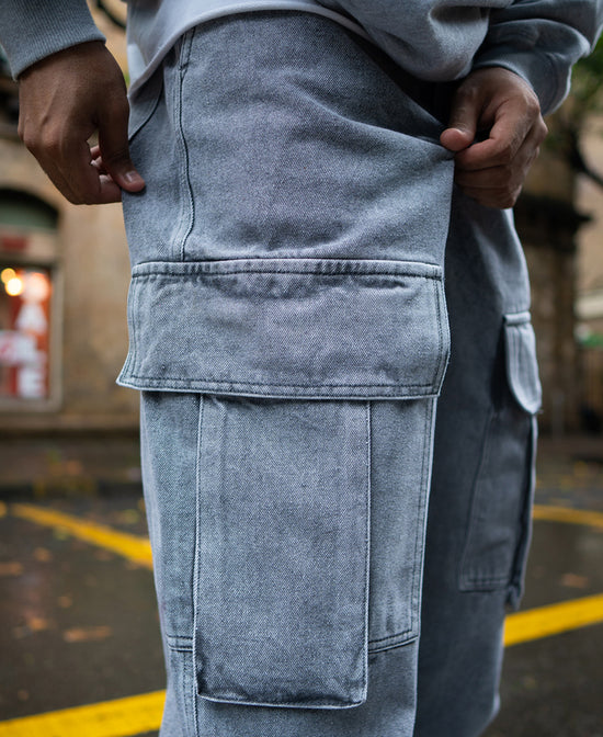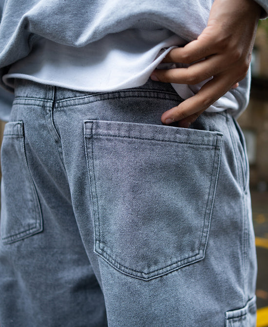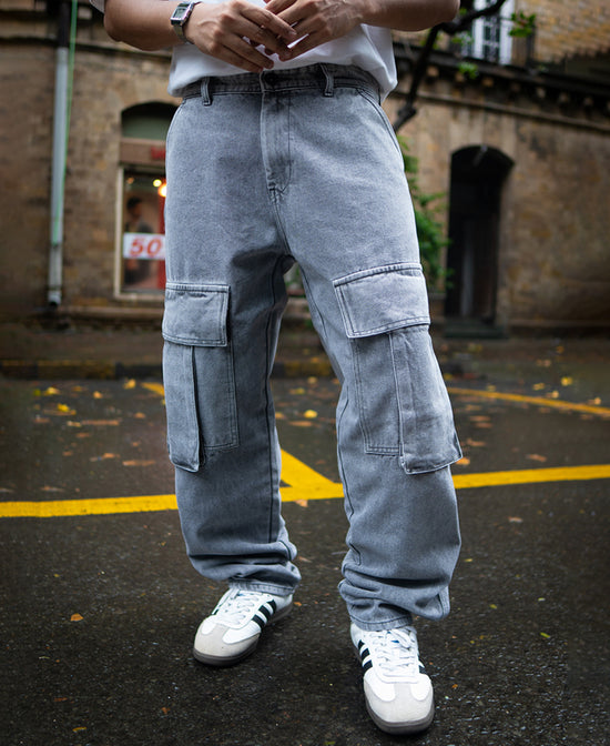 Charcoal Grey Baggy Fit Denim Jeans with Cargo Pockets