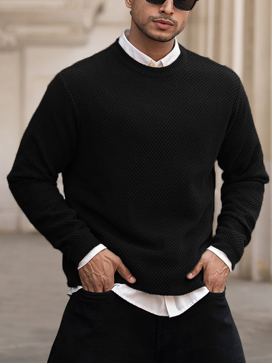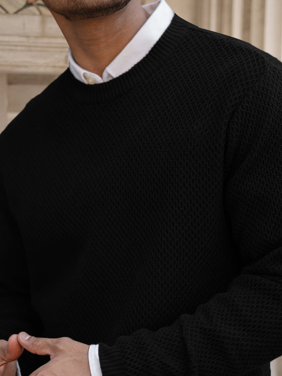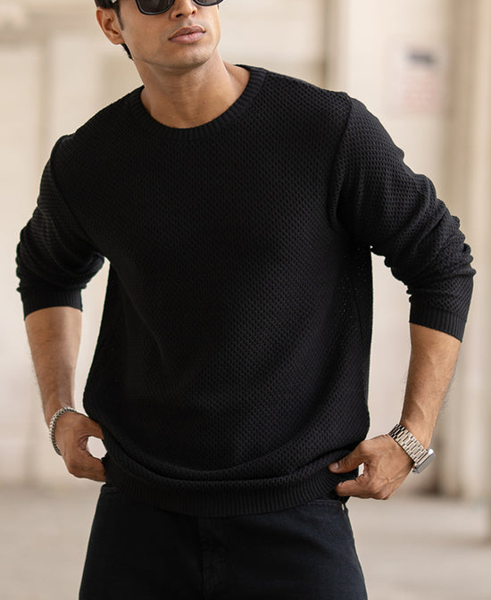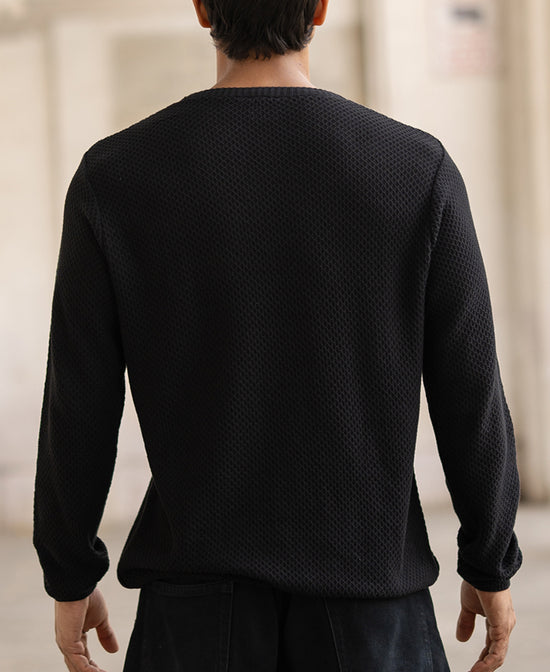 Black, but better. This structured t-shirt takes the staple you know and gives it a premium upgrade. Full sleeves for added versatility, a regular fit for comfort, and a texture that’s subtle yet striking—your wardrobe just got an upgrade. Made from 100% acrylic, it keeps its shape, resists wrinkles, and feels insanely comfortable.