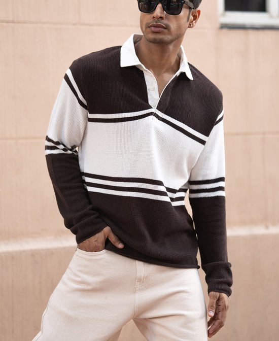 Warm tones, rich texture, and subtle stripes. This coffee-brown sweatshirt nails cozy sophistication. Soft on the inside, structured on the outside, and perfect for those “chill but classy” days. Pair with light denim for a calm contrast or go tonal for a luxe, muted vibe.