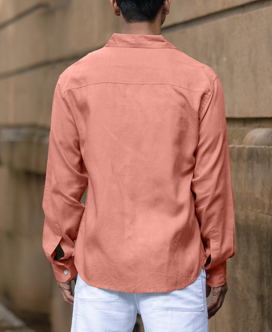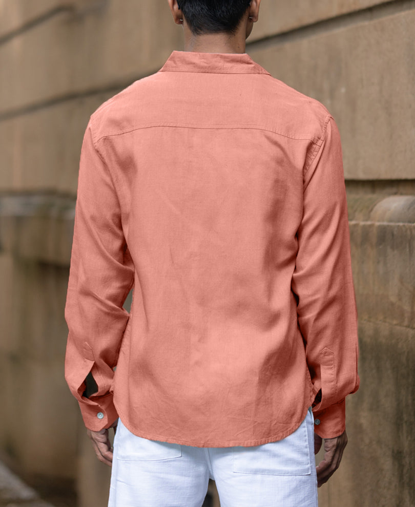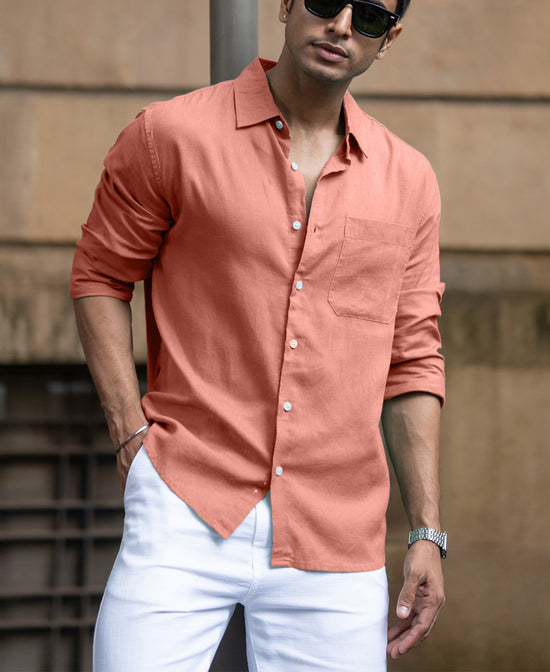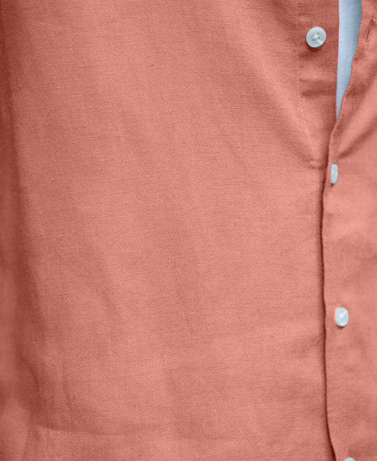 A pop of coral to brighten your wardrobe. Lightweight and breathable, this linen blend shirt feels like a summer escape; even if you’re busy hustling in life.