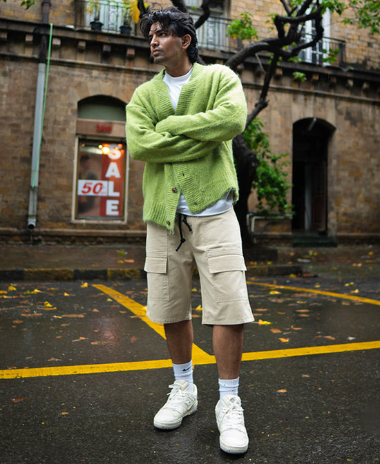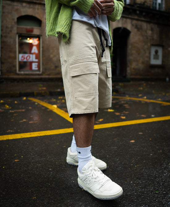 Cream Baggy Cotton Shorts