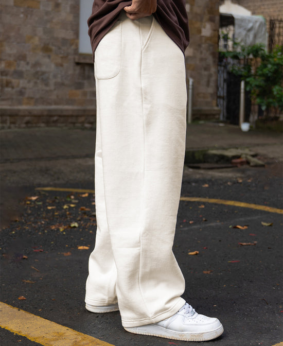Relaxed yet refined. These cream trackpants are cut in a loose, baggy fit with a soft textured finish that brings comfort to the forefront. An elastic waistband and back pockets add function to form, pair them with polos or oversized shirts for a modern, laid-back statement.