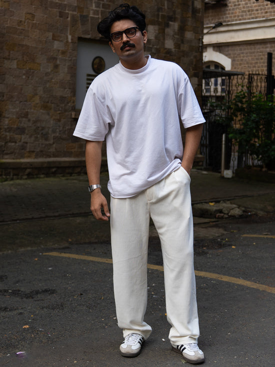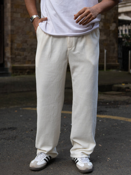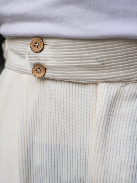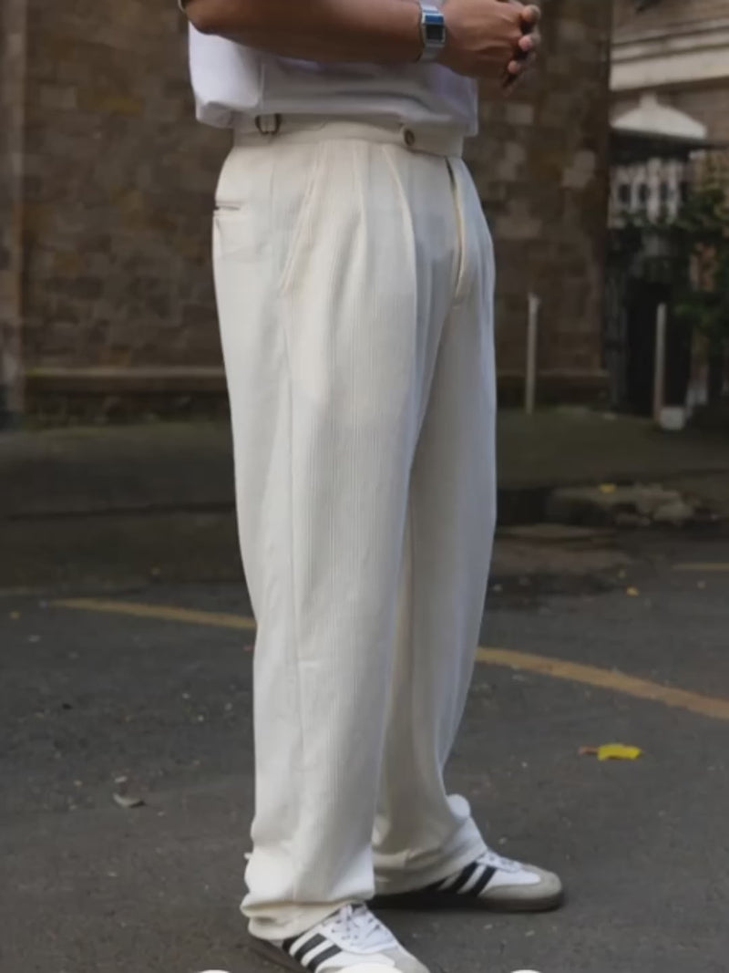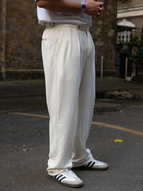 A modern nod to classic tailoring. The cream Gurkha pants come with their signature double-pleated waist and side buckle, giving a clean, military-inspired edge. Knitted fabric softens the look, making it easy to style. This gives you multiple option to slay; formal if you want, off-duty if you dare.