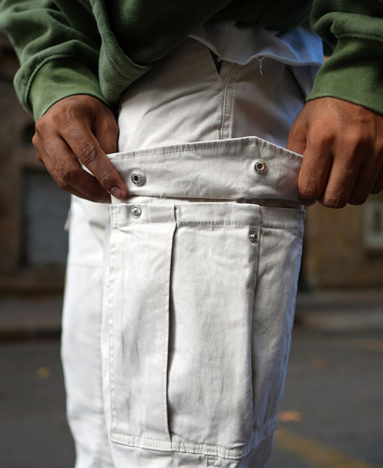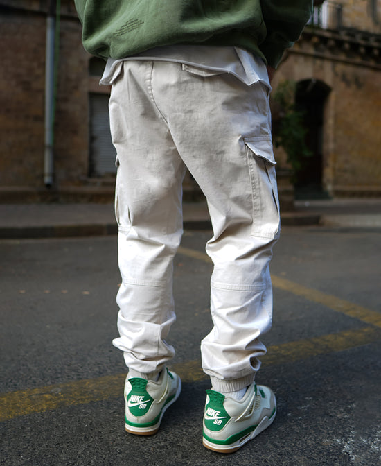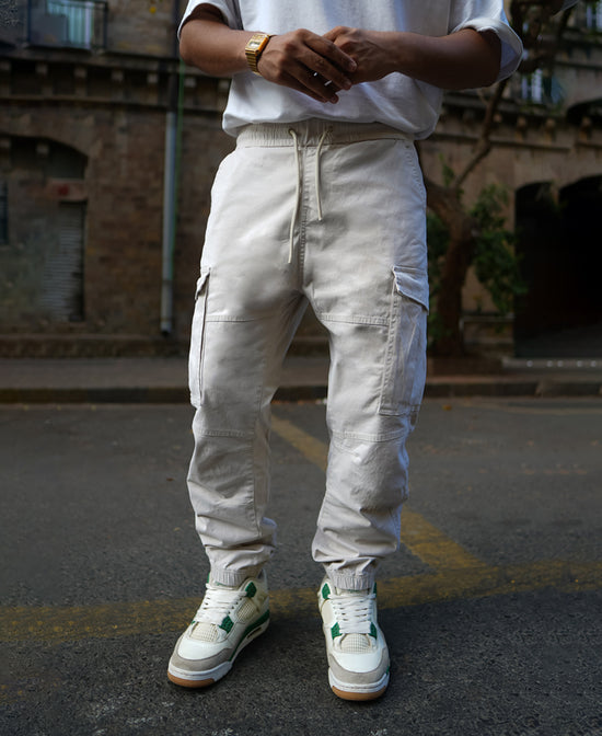Elevate your style with these versatile cream cargo pants for men, crafted from premium fabric that adds years to its wardrobe life, featuring spacious pockets and a relaxed fit for all-day comfort. The classic design pairs perfectly with sneakers and staples, seamlessly blending function and fashion.