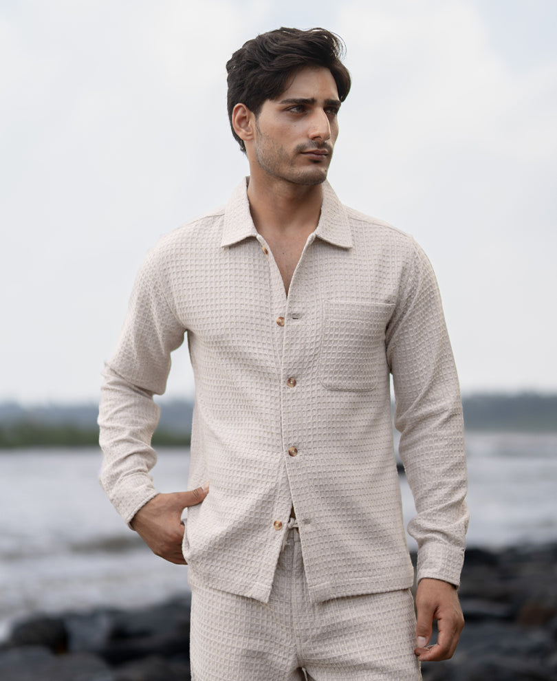 Inspired by the peace of the nature, this co-ord is perfect for work or for relaxed brunches. Woven in a double-layered fabric that feels soft yet structured, the Cream Structured Co-ord offers texture you can feel. Style your look with a tote for work and backpack for weekends.