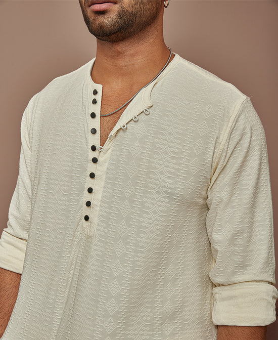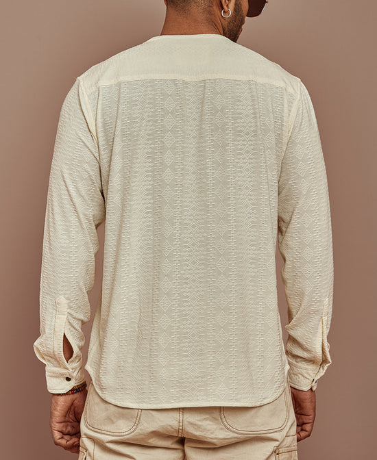 Cream Structured Kurta Style Regular Fit Full Sleeves Shirt