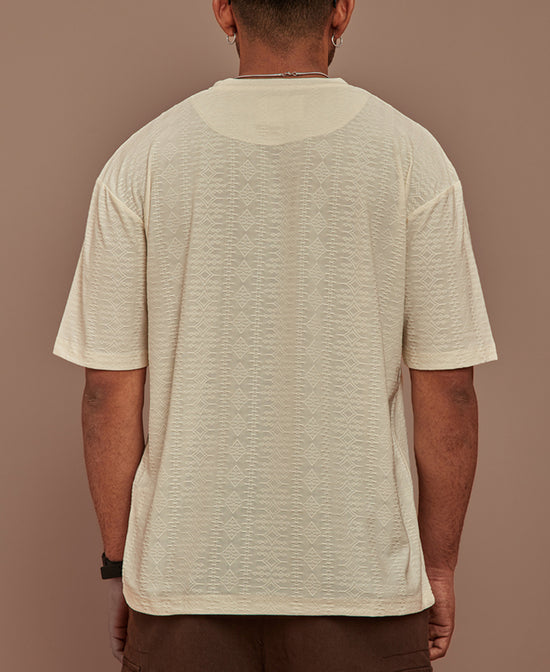 This cream-structured oversized T-shirt is not your average tee. Crafted from 100% Polyester fabric, it features a unique structured design that adds a touch of modern style. It's the perfect balance between relaxed and put-together, making it ideal for casual outings or dressed-down workdays.