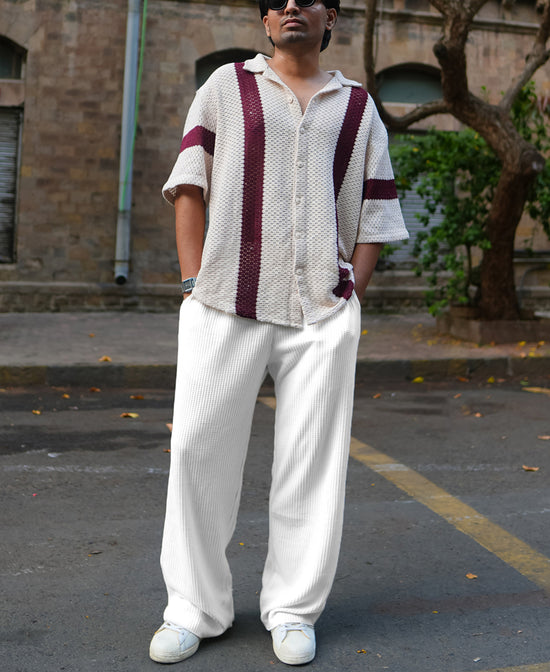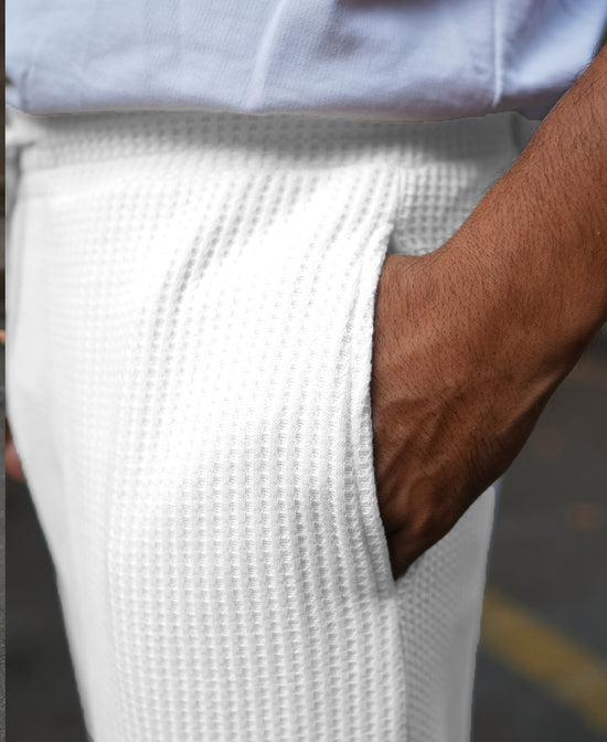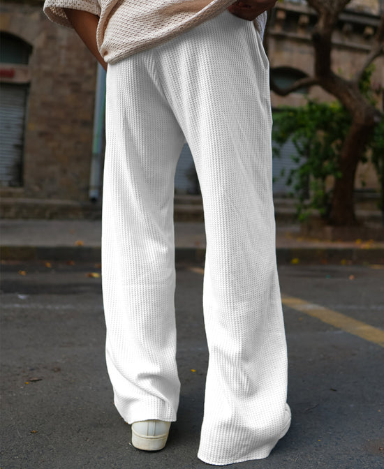 Add a touch of elegance to your casual wardrobe with these cream baggy-fit track pants for men, crafted from premium, textured fabric, they offer a relaxed fit that's perfect for all-day comfort. The versatile design effortlessly transitions from lazy weekends to casual outings, ensuring you stay stylish and comfortable no matter the occasion and the fit.