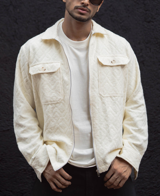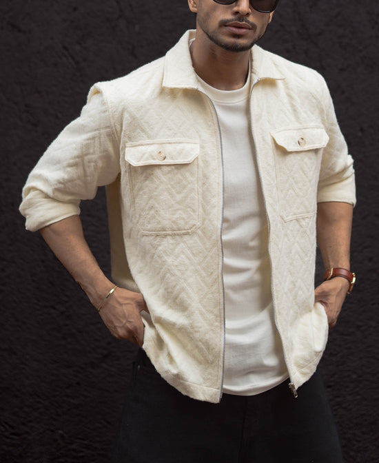 Cream Zip Style Full Sleeves Regular Fit Shirt