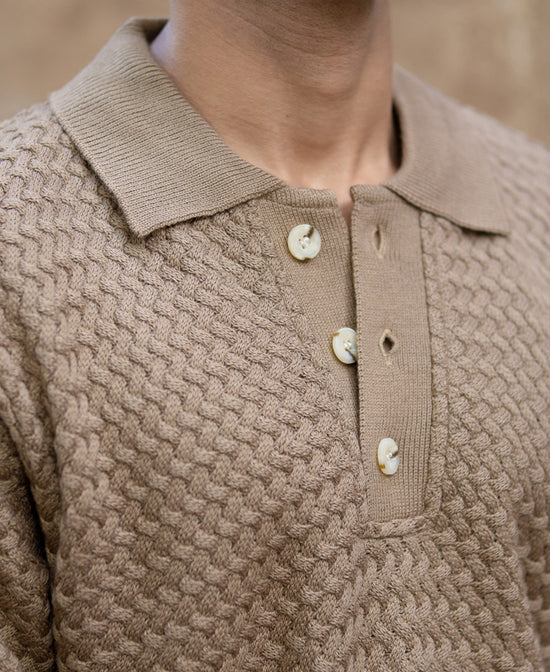 Dark Beige Knit Polo Sweater
