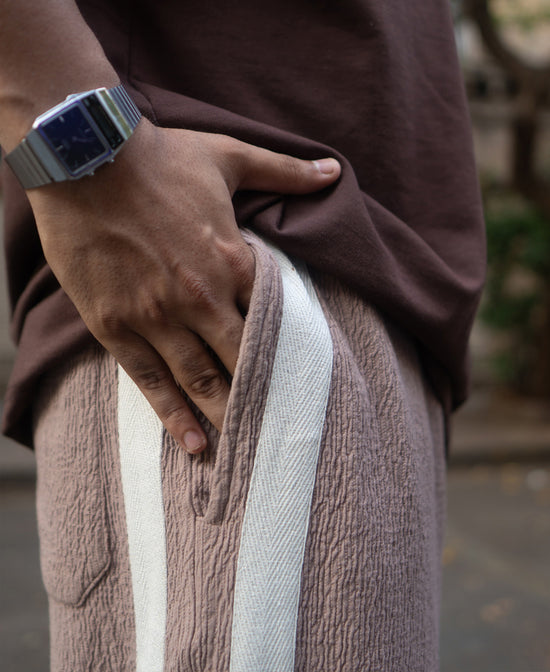 For days when you’re off-duty but still want to look on point. These knitted baggy pants in dark beige serve laidback class with a side of chill. They stretch, drape, and vibe with everything from oversized tees to fitted polos. Comfort that doesn't slack off.