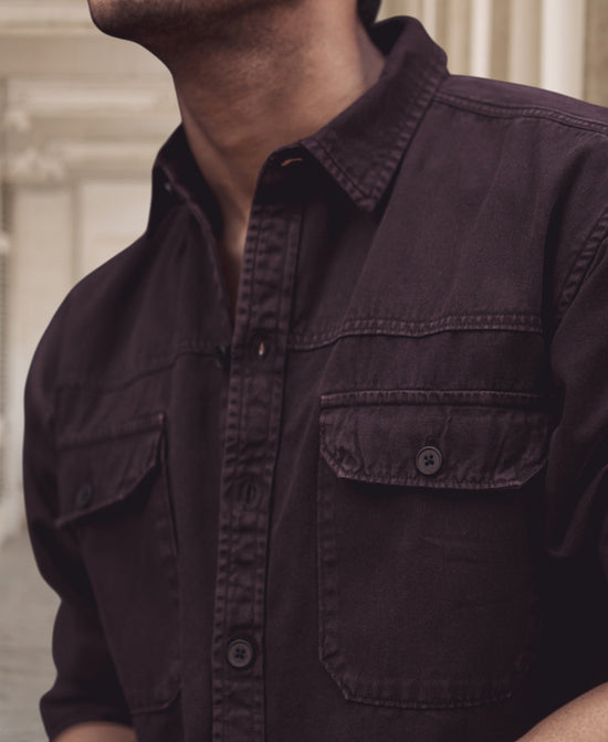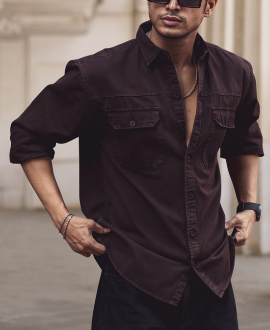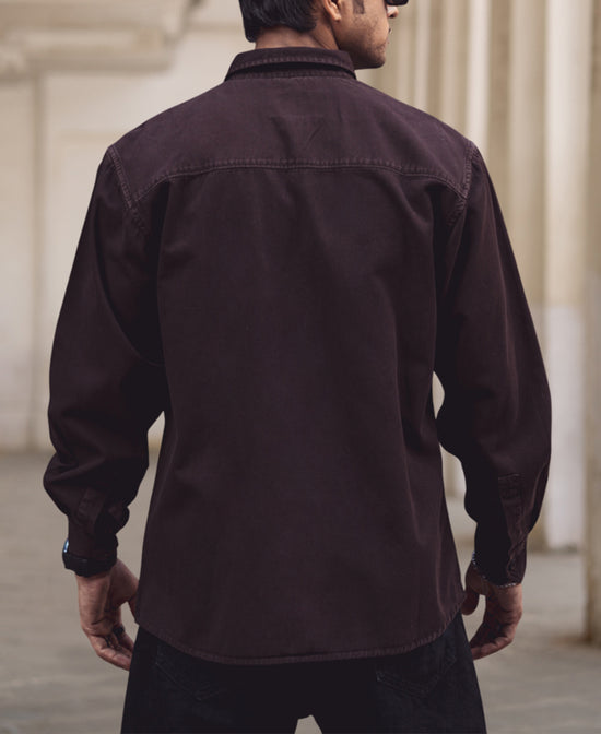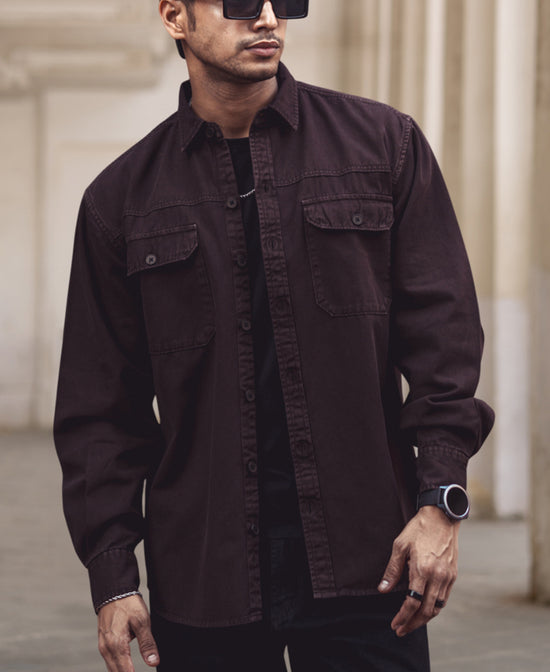 Dark Brown Denim Shacket Full Sleeves Shirt