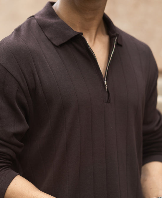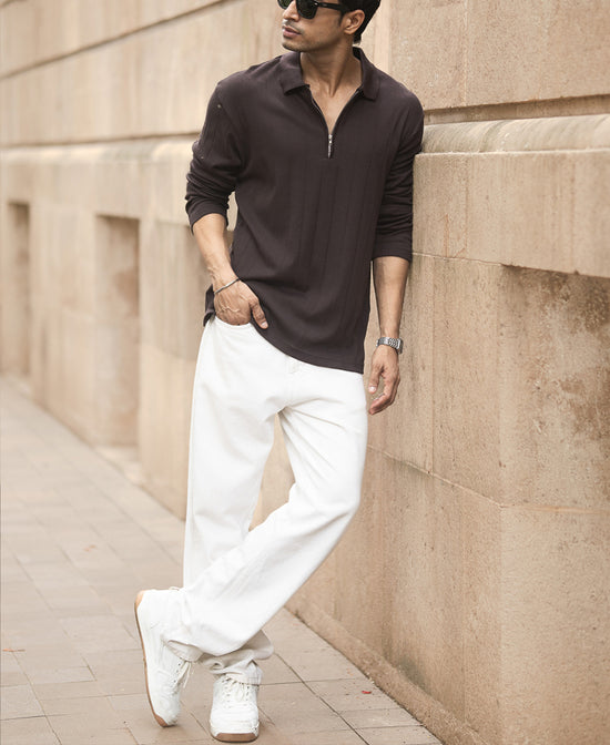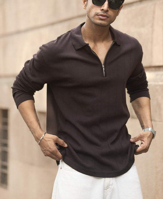 This dark brown zipper polo leans into its minimal structure but delivers maximum presence. It’s the kind of piece that instantly upgrades with your everyday rotation. Completely earthy, bold, and built to shine with every shift.