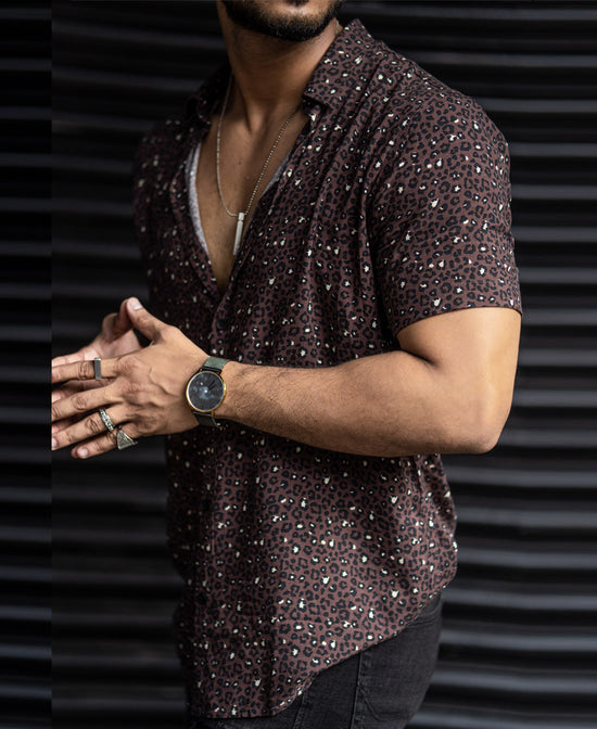 The Dark Brown Leopard Print Shirts for Men are the perfect way to add spice to your wardrobe. These casual shirts have a soft, comfortable feel and look great worn alone or with an extra layer. This casual shirt can be paired with Jeans and shorts on holidays or vacations and will help you create a unique casual look.