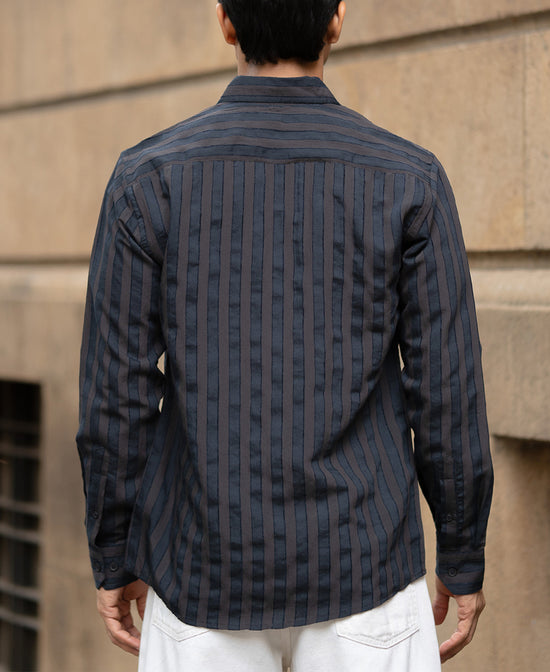 Dark Brown Structured Self Striped Shirt