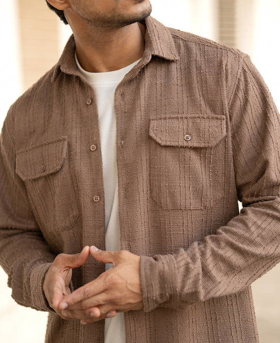 Tough, textured, and ready for anything. This dark camel full-sleeve shirt brings a rugged yet polished vibe with its subtle texture and regular fit. Wear it for work, wear it for weekends—either way, it’ll have you looking effortlessly put together.
