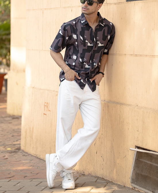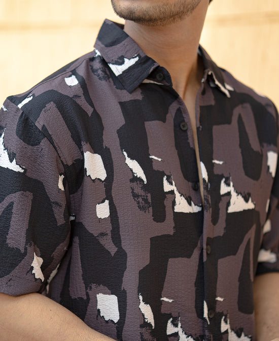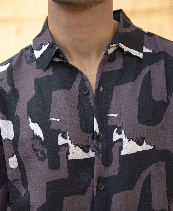Break away from the basics with the Dark Grey Abstract Structured Shirt. Featuring a textured feel and bold abstract prints, it brings an effortless edge to your everyday dressing. Lightweight, breathable, and built for those who like their style to be anything but ordinary.