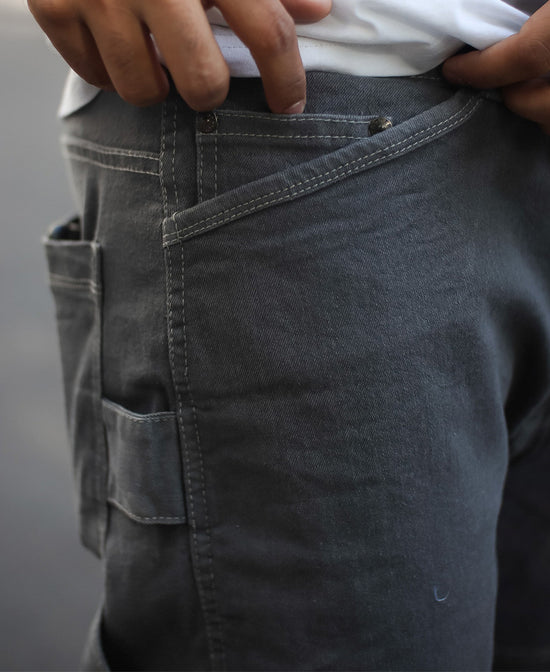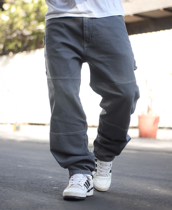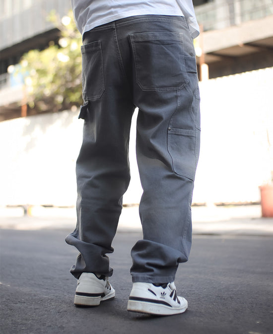 Here's the next must-have streetwear, grey carpenter baggy jeans for men. Its relaxed fit and multiple pockets maximize ease of movement and utility, making it perfect for casual occasions. The baggy jeans are made of Cotton Stretchable fabric to sustain everyday wear. Its sturdy build gives you the same comfort every time. Wear it with an oversized t-shirt to create the season's best looks.