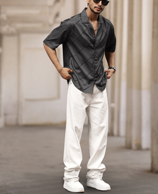 The Dark Grey Solid Structured Oversized Shirt is for the guy who doesn’t need to scream for attention to get it. Made from 100% polyester, this shirt gives you that structured, sharp look with zero effort. The half sleeves and collar keep things chill, while the oversized fit gives you room to move—without losing any street-style cred. The dark grey color is as versatile as it gets, meaning it pairs with practically everything in your closet.