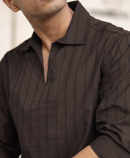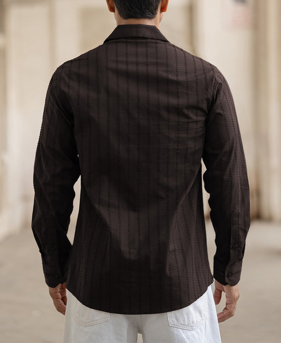 Dark grey structured fabric that gives your casual look an edge. This full-sleeve shirt is built for guys who like their style effortless but refined. The regular fit ensures comfort, while the sharp design makes it perfect for layering or wearing solo. Pair it with dark denim for a clean, confident look.