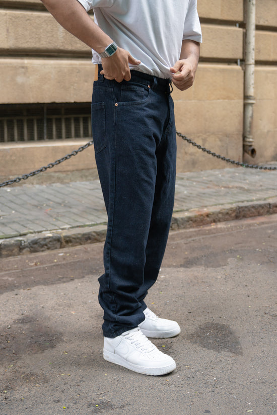 These dark indigo jeans offer a structured yet relaxed fit, giving a nod to vintage workwear with modern appeal. The raw finish means they’ll age beautifully with wear, while the roomy cut provides maximum comfort. Perfect with a crisp shirt or a relaxed tee.