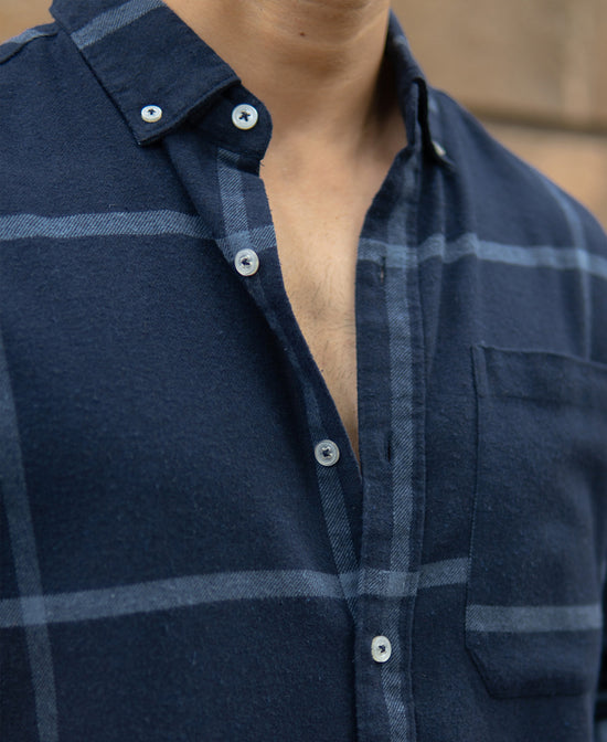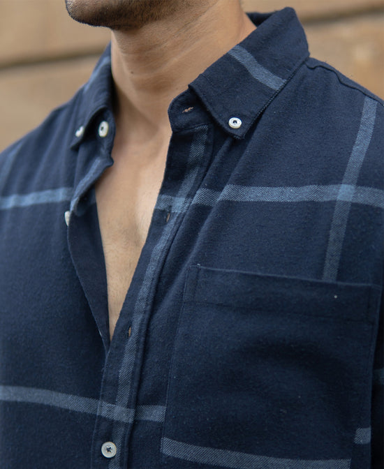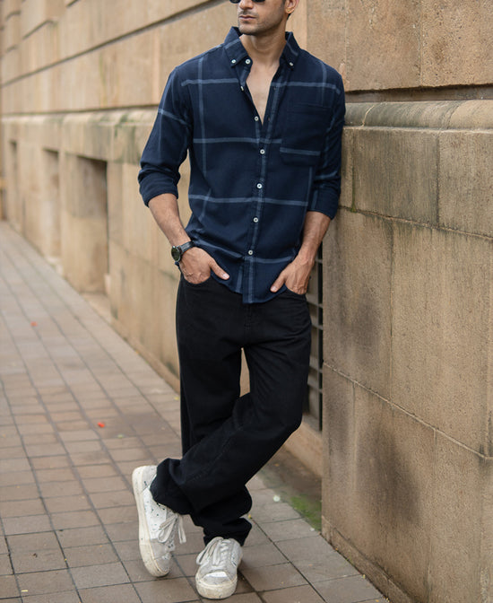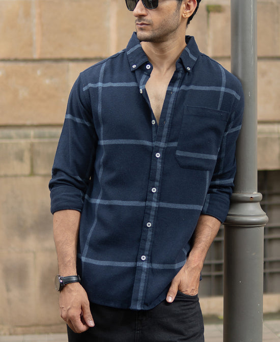 Dark Navy Brushed Checks Shirt