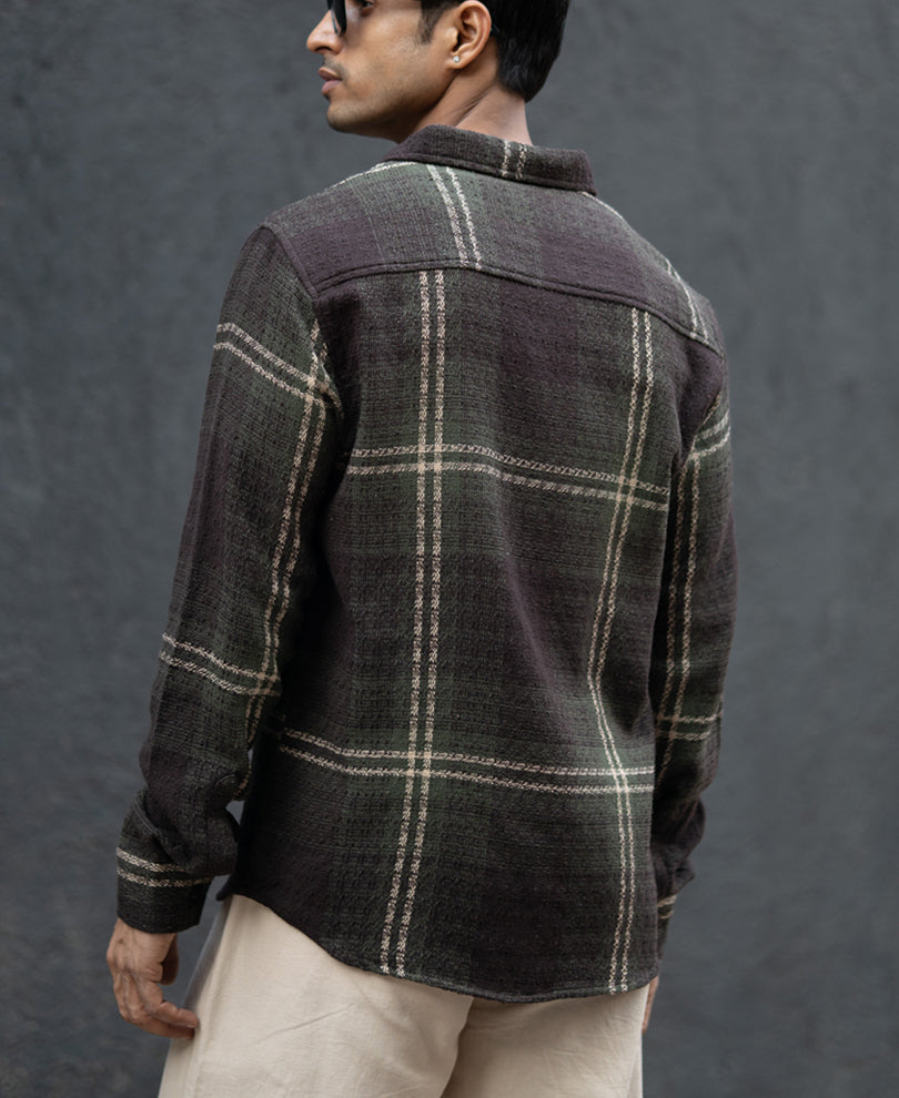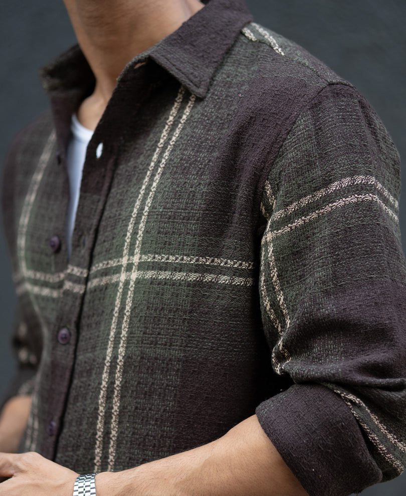 Dark Olive Structured Checks Shirt