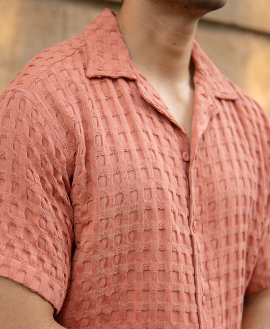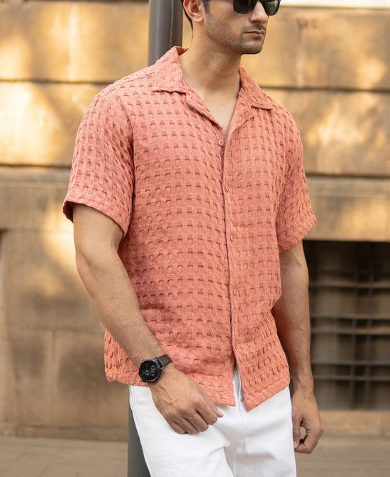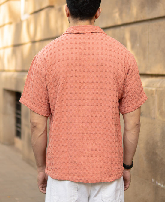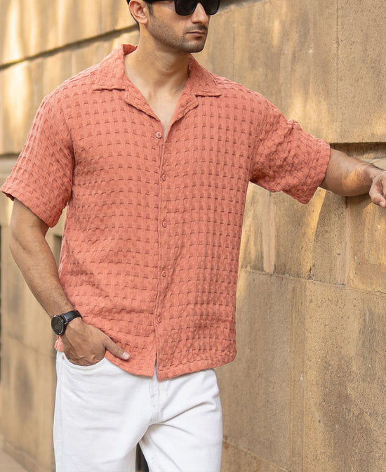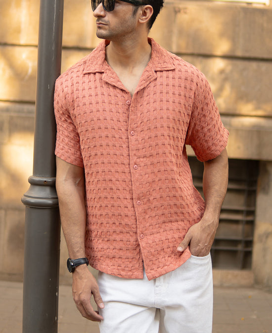Put a zing in your step with this dark peach shirt. Structured enough to keep things sharp and oversized enough to keep things casual, this shirt feels like wearing a sunset. The dark peach colour shirt for men is bold and never boring, and its structured shirt design ensures an effortless stylish look.