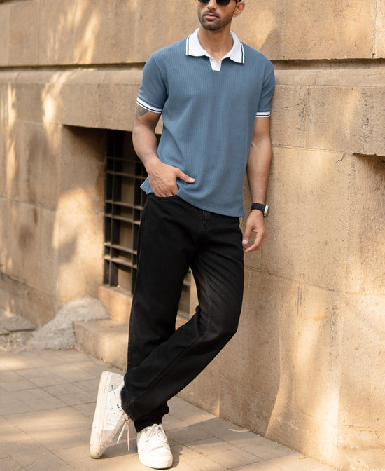 Stormy, smooth, and quietly bold. The Dark Sky Contrast Collar T-Shirt feels like twilight in style form. Moody hues meet structured design, making it ideal for evenings when you want to make an impression without raising your voice. A soft-spoken stunner.