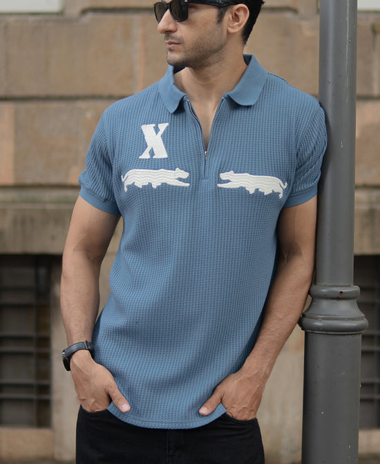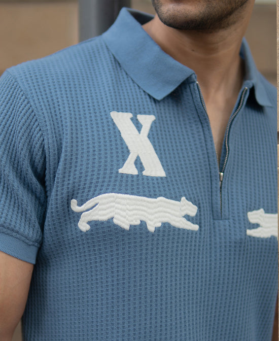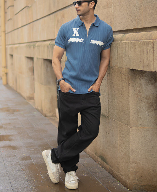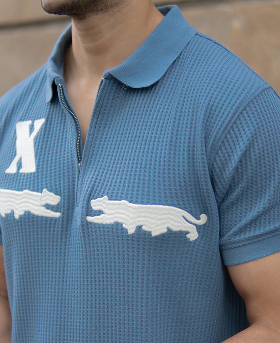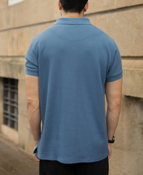 In a deep sky-blue tone, this polo t-shirt offers a textured knit fabric for a structured yet breathable fit. Featuring minimal chest embroidery for a touch of sporty detail, it’s styled with a classic polo collar and short sleeves. Works equally well tucked into chinos or worn loose over jeans for a casual weekend style.