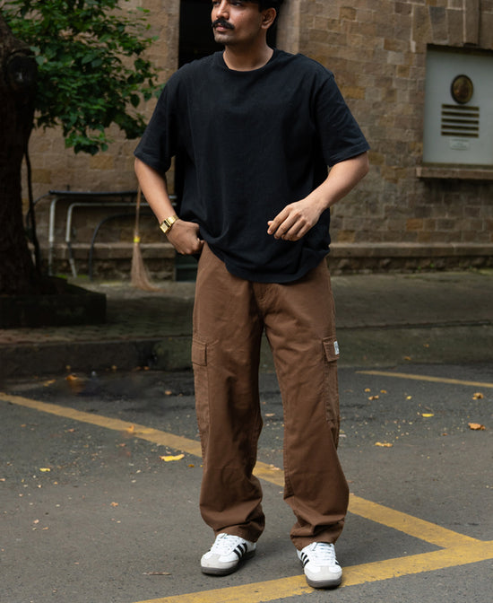 Dark Tan Cotton Baggy Cargo Pant