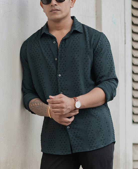When dark teal walks in, the basics step aside. The Dark Teal Structured Regular Fit Shirt is all about effortless style, sharp structure, and all-day comfort. Crafted from 100% polyester, it’s got that smooth, durable finish that keeps you looking fresh from morning meetings to late-night plans. The full sleeves and classic collar add a refined touch, while the regular fit ensures you don’t have to compromise on comfort.
