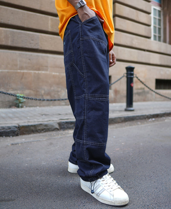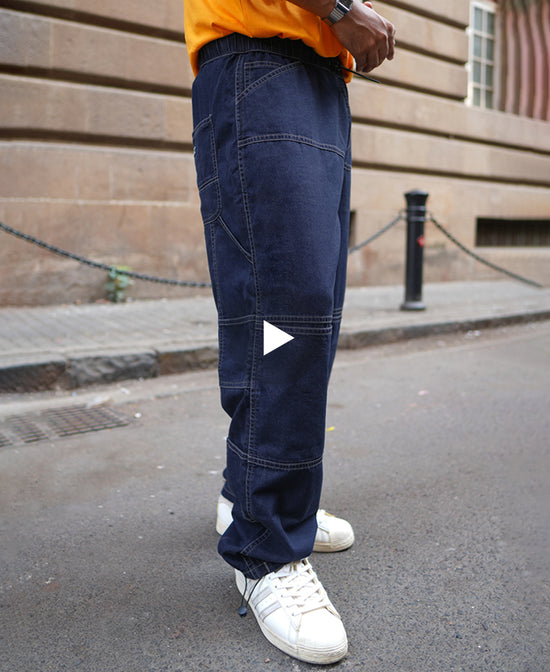 Living life on the go? Embrace functionality and style with our Blue Denim Baggy Fit Parachute Pants for men, made from durable, high-quality fabric, these pants feature stylish contrast stitching, a relaxed fit and an adjustable waistband to ensure maximum comfort. Ideal for outdoor adventures, running errands, or casual hangouts, they pair effortlessly with your casual wardrobe.
