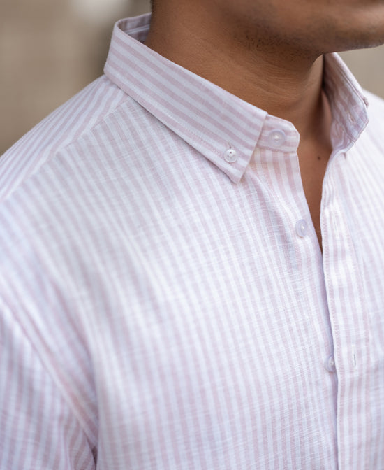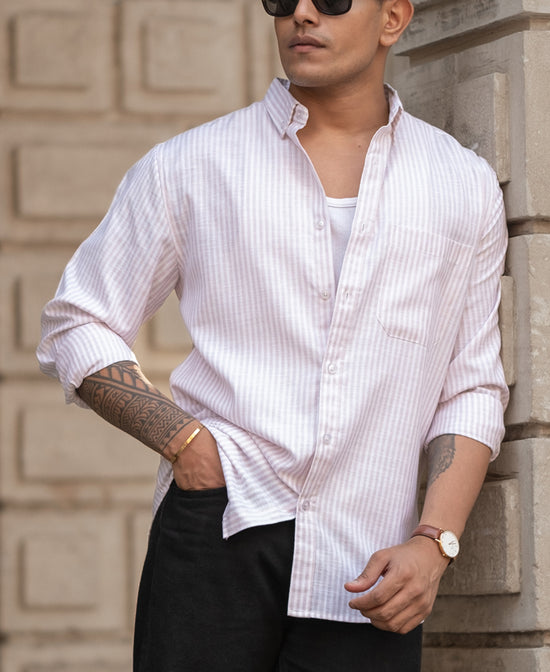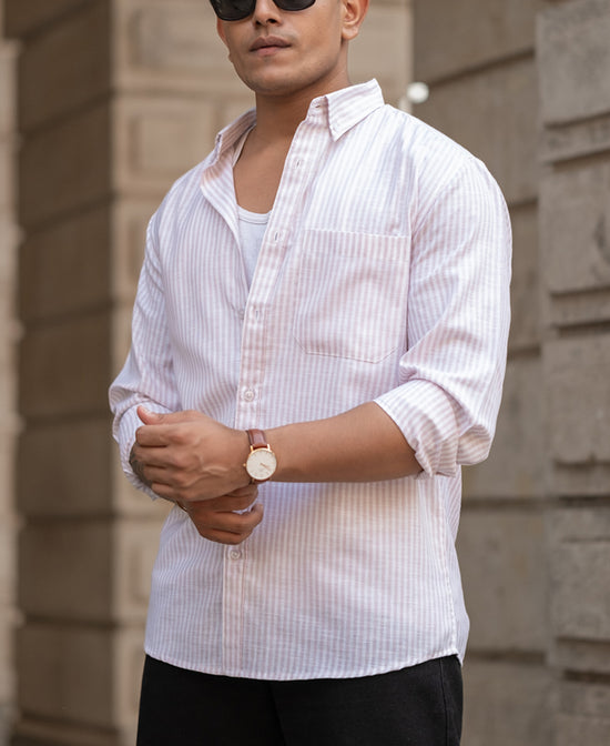 Dusty pink with subtle stripes for that understated charm. This regular-fit shirt is perfect for guys who appreciate soft tones with a stylish edge. The breathable fabric ensures comfort, making it a great pick for warm days. Pair it with chinos or jeans for a relaxed yet refined look that’s perfect for any setting.