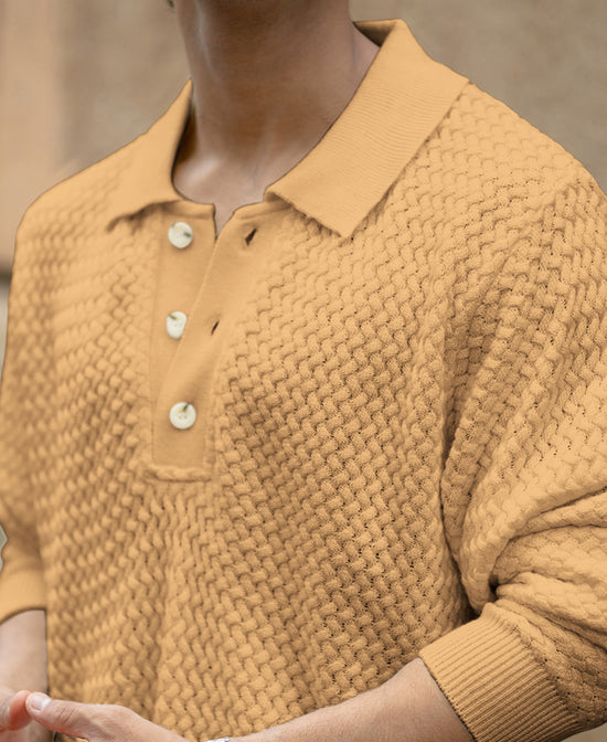 This dusty yellow knit polo sweater is sunshine made wearable. The muted hue makes a bold color approachable, while the textured knit feels both modern and timeless. It’s the kind of piece that brightens your look and maybe even your day.