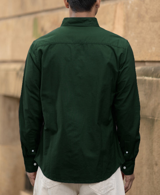 Sharp and striking, the emerald green Oxford shirt commands attention even from a distant. Crafted from sturdy cotton with a clean button-down finish, it’s bold enough for evenings out and classic enough for weekdays in.